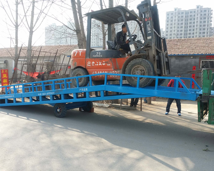 移動登車橋是與叉車配合使用的貨物裝卸輔助設(shè)備。有了它,叉車能直接從地面駛?cè)肫囓噹麅?nèi)部進行批量裝卸作業(yè)。移動登車橋采用人工液壓動力,不需接動力電源,只需單人操作,可實現(xiàn)貨物的快速裝卸。它可使企業(yè)減少大量勞動力,成倍提高裝卸作業(yè)效率,加快貨物流通速度,獲取更大經(jīng)濟效益。移動登車橋用于郵政、工廠等有站臺的倉庫、貨廠等大噸位批量裝車,具有效率高等特點。DCQ型為手搖變幅式,用手搖泵操作,不用電源就可使橋板實現(xiàn)變幅;廣泛用于無裝卸設(shè)備和裝卸貨臺的流動裝卸場所;是一種省時、省地、解決高位差作業(yè)的高效物流機械。