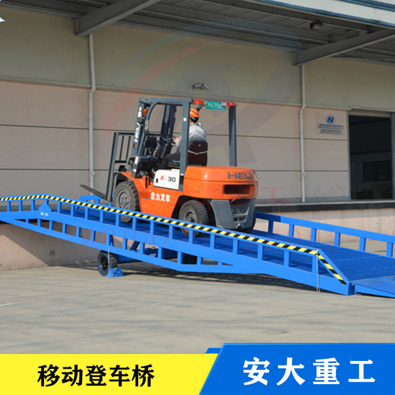 移動式登車橋是與叉車配合使用的貨物裝卸輔助沒備,可根據(jù)汽車車用的高低調(diào)節(jié)高度,叉車可以直接通過本設(shè)備駛?cè)胲噹麅?nèi)部進(jìn)行貨物的批量裝卸,需單人作業(yè),即可實(shí)現(xiàn)貨物的快速裝卸。它使企業(yè)減少大量勞動力,提高工作效率,獲取經(jīng)濟(jì)效益。